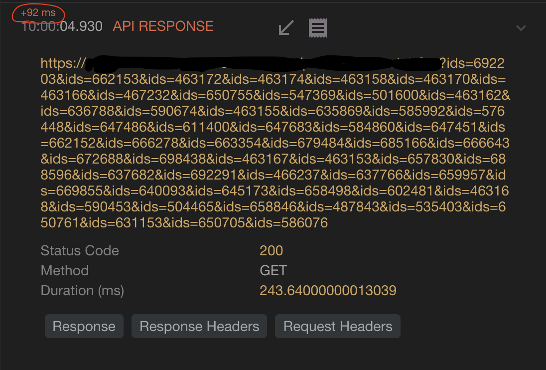I've looked around the docs and release notes for information on what exactly the time duration in ms represents in the top left of each timeline item. Can anyone clarify this? It's not the duration of the request since the number is different from the response duration(ms) underneath.
