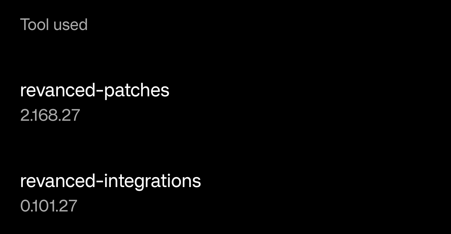 # 1.0.0 (2023-07-06) ### Bug Fixes * `autorepeat-by-default` patch ([#148](https://github.com/rmnscnce/revanced-patches/issues/148)) ([fe628ba](https://github.com/rmnscnce/revanced-patches/commit/fe628ba909d89ea0bf3d95fe94ca78ef819677da)) * 'Hide breaking news shelf' setting hides album card header in search results ([2ccafc6](https://github.com/rmnscnce/revanced-patches/commit/2ccafc6b4bb7c9fd62fedba1a3ae35506eba8f60)) * `auto-captions` patch switch description ([#488](https://github.com/rmnscnce/revanced-patches/issues/488)) ([7bcac4f](https://github.com/rmnscnce/revanced-patches/commit/7bcac4fb65ca5439dd5fb6a8fc269c90629a7f65)) * `bypass-ambient-mode-restrictions` patch is broken ([032cea6](https://github.com/rmnscnce/revanced-patches/commit/032cea651a023f96f79046b3f04a245ef246af73)) * `codecs-unlock` patch and update Music patches to `5.14.53` ([2437d30](https://github.com/rmnscnce/revanced-patches/commit/2437d3070f6a630d353619f642cefebd47abee20)) * `create-button-signature` ([a173f6e](https://github.com/rmnscnce/revanced-patches/commit/a173f6e5a7e65943657e2072e8a72a4a680e5277)) * `custom-branding-icon-afn-red` is not set as default icon ([9956b54](https://github.com/rmnscnce/revanced-patches/commit/9956b54e468bcb4a543efd4a46e17cf787459e73)) * `custom-branding-music-afn-blue` patch is not excluded by default ([b3cd3d4](https://github.com/rmnscnce/revanced-patches/commit/b3cd3d4fb8bcba5d367a28d4cf4b8fa0bbbed02e)) * `custom-branding` patch failing to get resources ([efb6d4c](https://github.com/rmnscnce/revanced-patches/commit/efb6d4c2be515185fc9bd29c40ce202f0d684cee)) * `default-video-quality` patch crashing ([#227](https://github.com/rmnscnce/revanced-patches/issues/227)) ([379327a](https://github.com/rmnscnce/revanced-patches/commit/379327a6b2325ef93c7107472343dd9fd85a0f56)) * `default-video-speed` patch is broken ([59a5206](https://github.com/rmnscnce/revanced-patches/commit/59a5206ad671a0437fdd605c9b1920b9b6dd7117)) * `disable-create-button` not working with prebuilt jar file ([#55](https://github.com/rmnscnce/revanced-patches/issues/55)) ([78be64a](https://github.com/rmnscnce/revanced-patches/commit/78be64accc2023281c0c376849cdb0213622dc5c)) * `enable-seekbar-tapping` patch ([52fd726](https://github.com/rmnscnce/revanced-patches/commit/52fd726d9b0d2efbd0f9742fc84ad01ccdcff168)) * `enable-timestamps-speed` patch is not reflected in patch information ([a7cb47c](https://github.com/rmnscnce/revanced-patches/commit/a7cb47c5ef868e7b5a29f0ee68d703a9116082a4)) * `exclusive-audio-playback` patch ([#153](https://github.com/rmnscnce/revanced-patches/issues/153)) ([9beff95](https://github.com/rmnscnce/revanced-patches/commit/9beff9567f1586e5c58690c1f1d2f7f204025ab7)) * `force-player-button-background` patch removes unintended setting ([d6f7d4d](https://github.com/rmnscnce/revanced-patches/commit/d6f7d4d94bccef28af692d5b2c8159f6eb313dc9)) * `force-vp9-codec` patch applied to wrong method ([5cee503](https://github.com/rmnscnce/revanced-patches/commit/5cee50335790151764a401fae13a2a7d7cd013ad)) * `Hide live chat button` (player) setting removed live chat button in button container ([0203354](https://github.com/rmnscnce/revanced-patches/commit/0203354a1a5e0825ad4d2d90d1441df1187cb539)) * `Hide shorts player subscriptions button` does not work at tablet layout and old layout ([4dacefb](https://github.com/rmnscnce/revanced-patches/commit/4dacefb5c55d1fca2099831262613c46fd4630f7)) * `hide-get-premium` patch breaks account popup layout in tablet ([3bd503d](https://github.com/rmnscnce/revanced-patches/commit/3bd503da8ec9e1abe5ba83850a68625df33798d4)) * `hide-get-premium` patch is broken in latest version ([835a14a](https://github.com/rmnscnce/revanced-patches/commit/835a14a2d5da1d5ae84c0b7e6e8961af7bb5af57)) * `hide-live-chat` patch still in patch list ([b4df344](https://github.com/rmnscnce/revanced-patches/commit/b4df34498f32043eec35e4398f380f8f3c1ff1ea)) * `hide-suggested-actions` patch is broken ([e9bb348](https://github.com/rmnscnce/revanced-patches/commit/e9bb348bc6f7dee1c83c5515916a4eecec69a467)) * `hrd-auto-brightness` ([#152](https://github.com/rmnscnce/revanced-patches/issues/152)) ([5f2e9ba](https://github.com/rmnscnce/revanced-patches/commit/5f2e9ba30b7432be04bdc9f9f7ec7ac75fdc4b34)) * `Index` in wrong package ([2f9360f](https://github.com/rmnscnce/revanced-patches/commit/2f9360f57cc8415564534fbbd8bd5e2a83a1b629)) * `materialyou` patch is broken ([fa741d8](https://github.com/rmnscnce/revanced-patches/commit/fa741d87d18f03c43dffd46a29da4e9e71c261ac)) * `materialyou` patch is broken ([b550ed4](https://github.com/rmnscnce/revanced-patches/commit/b550ed4c21e2c1133f787a98cb8d8d911e5ee6ce)) * `microg-support` patch is sometimes broken ([0966b7d](https://github.com/rmnscnce/revanced-patches/commit/0966b7dc9e793676cf2b9e915d9aebf495c17971)) * `minimized-playback` & `old-quality-layout` wrong opcodes ([b45d175](https://github.com/rmnscnce/revanced-patches/commit/b45d175c6f1ece6da894ab16128c2644d262c9c7)) * `minimized-playback` patch ([55677a4](https://github.com/rmnscnce/revanced-patches/commit/55677a44ff965c0b92c3f1d771bd68c12c142ad4)) * `minimized-playback` patch for YouTube Kids videos ([#201](https://github.com/rmnscnce/revanced-patches/issues/201)) ([31e3b42](https://github.com/rmnscnce/revanced-patches/commit/31e3b42c6bbce0d00f049b8a69bafc94900bb3b4)) * `music-microg-support` patch causes YT settings to crash https://github.com/inotia00/ReVanced_Extended/issues/874 ([fd55c4b](https://github.com/rmnscnce/revanced-patches/commit/fd55c4b76d3f1ac85a9b4de9209decba6d74093f)) * `old-quality-layout` patch ([2497425](https://github.com/rmnscnce/revanced-patches/commit/2497425c9f11b8b14c861c2f0f34ff47bdbfac53)) * `optimize-resource` patch removes license activity ([9cd4c02](https://github.com/rmnscnce/revanced-patches/commit/9cd4c0225357b7eecc20ee05f6347a5f3d6a7a35)) * `patch-options` targets all apps ([5cca339](https://github.com/rmnscnce/revanced-patches/commit/5cca3391ed06547725698334d0615e4f4fef3129)