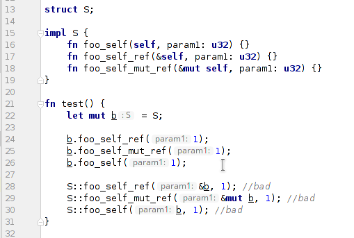 S::foo_self_mut_ref(&mut b, 1); //bad