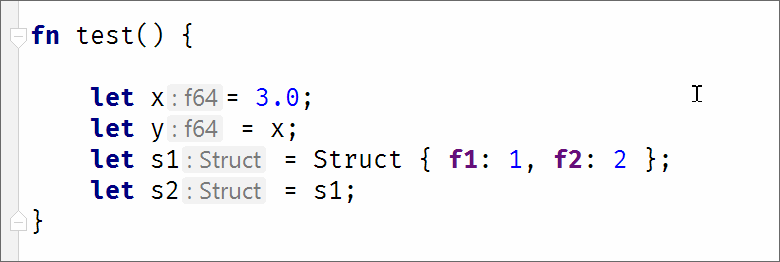 My main concern here is optionality of this feature. I think it must be possible to switch it off separately for the argument names and for the inferred types. IDEA has a special setting for it: "Editor -> General -> Appearance -> Show parameter name hints" with the "Configure..." button for extended settings, including per-language options. Unfortunately, other products (I looked in CLion) still don't have such block in the Preferences, so we need to add our own settings, probably to the "Langs & Frameworks -> Rust" panel ( PS: I'm on vacation now, so sorry for possible delays in my answers :) |