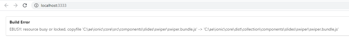 [ ERROR ] EBUSY: resource busy or locked, copyfile 'C:\ae\ionic\core\src\components\slides\swiper\swiper.bundle.js' ->