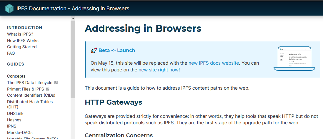 Similar in style to the deprecation warning on the docs-beta.ipfs.io site.