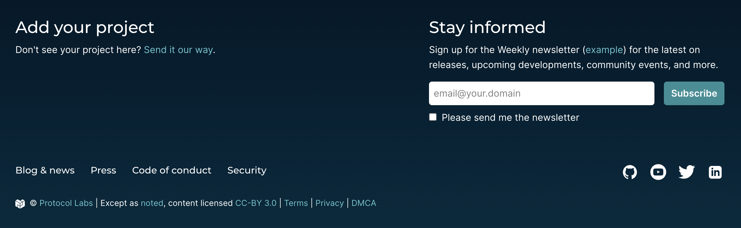 - Added a new "Add your project" section to footer with a link to the new project airtable submission form