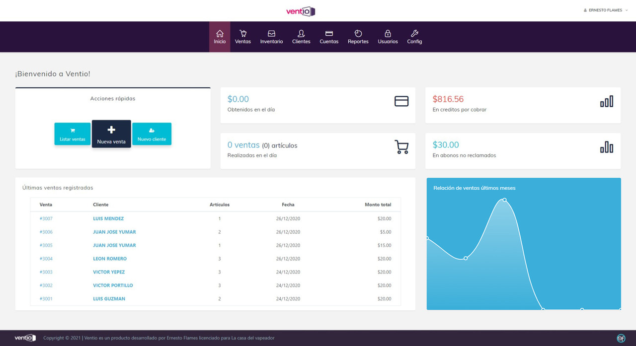 About Ventio name: Vent is for VENTAS and INVENTARIO words (spanish) and IO is for Input Output... Yikes!! smart AF!