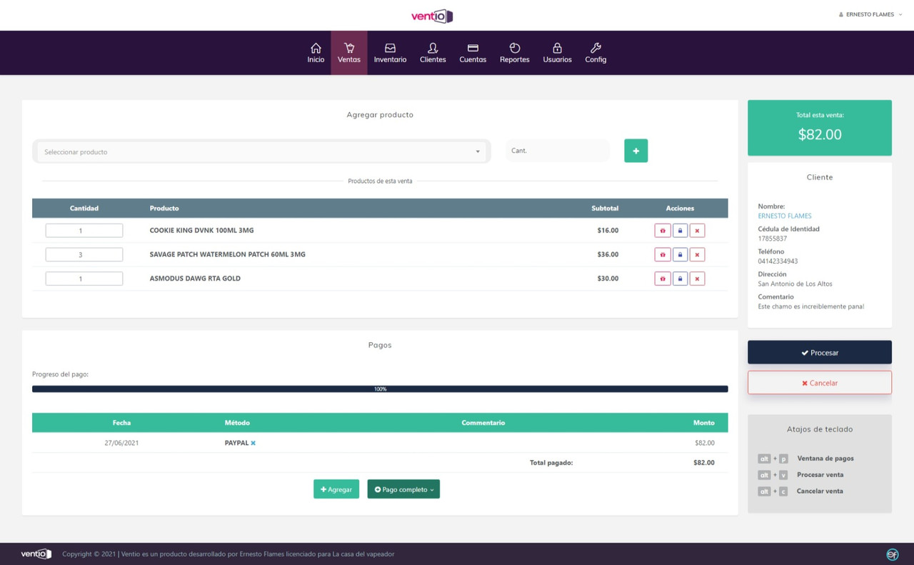 Ventio is an inventory and sales manager created by me, developed with high security standards, a highly polished, fast and intuitive user interface.