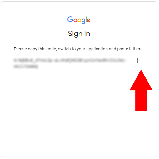 The application will prompt to visit the authorization url. Navigate to the url, select your email and copy the code as shown in the image below.