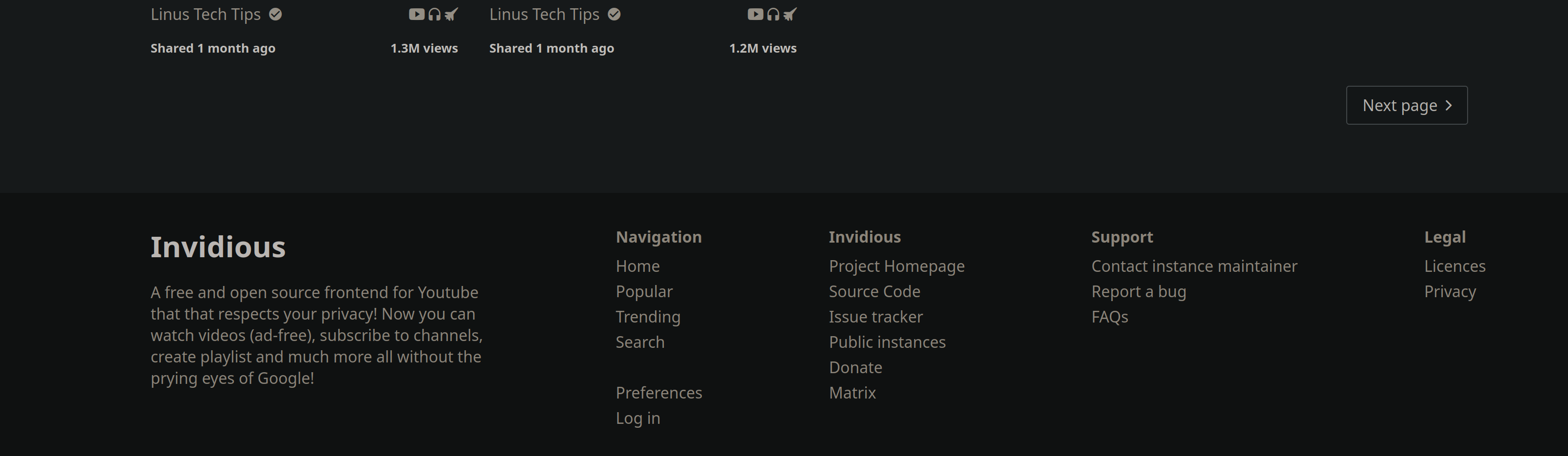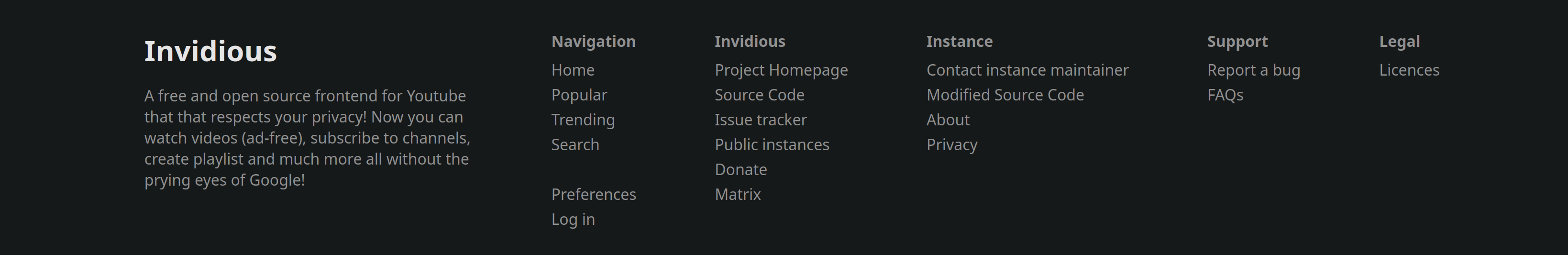 With the recentish PRs of adding contact information and abuse links to Invidious's footer I thought I'd throw my hat back in the ring with my old footer overhaul code from #2215