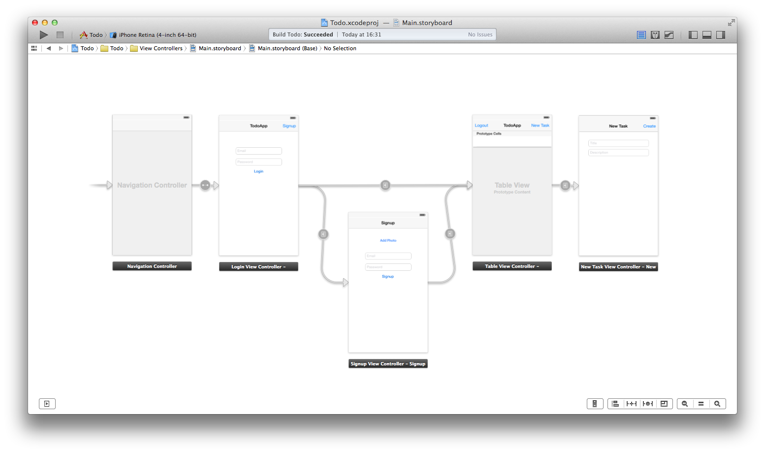 The process on the NewTaskViewController is very similar to the LoginViewController and the SignupViewController, so I will skip that particular view controller as well.