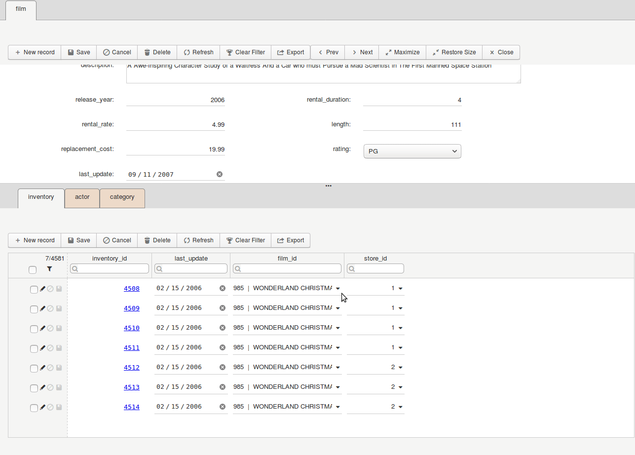 [1]: You can use sakila database dump as demo database https://github.com/ivanceras/sakila