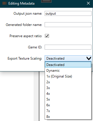enables the scaling of textures during export, the desired scaling can be set in the metadata window.