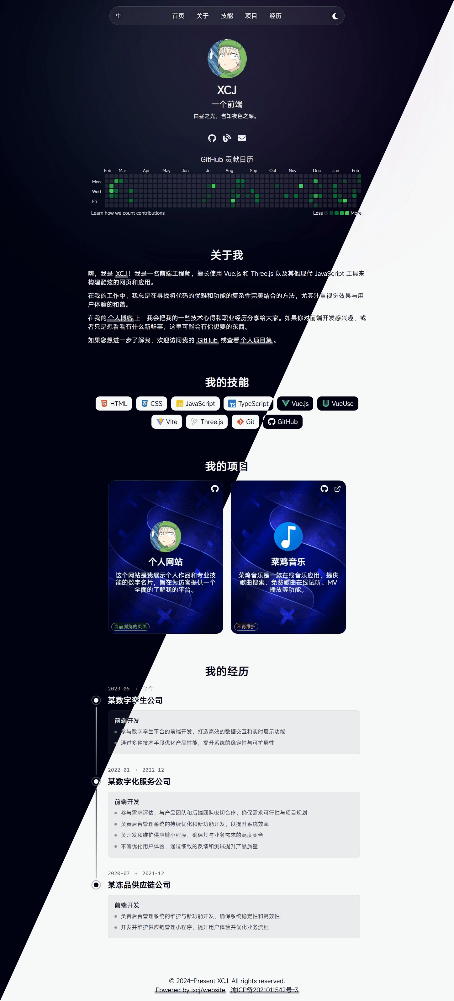 基于 Vue3 开发的个人作品和专业技能的数字名片网站。