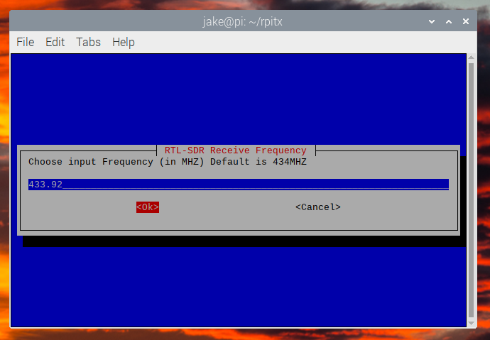 Once the exact frequency of the remote-outlet communications was determined, we fired up Rpitx once again and told it to listen at the frequency we now knew the remote would operate at.
