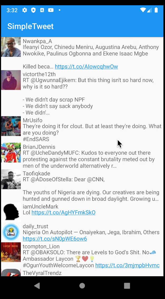 SimpleTweet is an android app that allows a user to view his Twitter timeline. The app utilizes Twitter REST API.