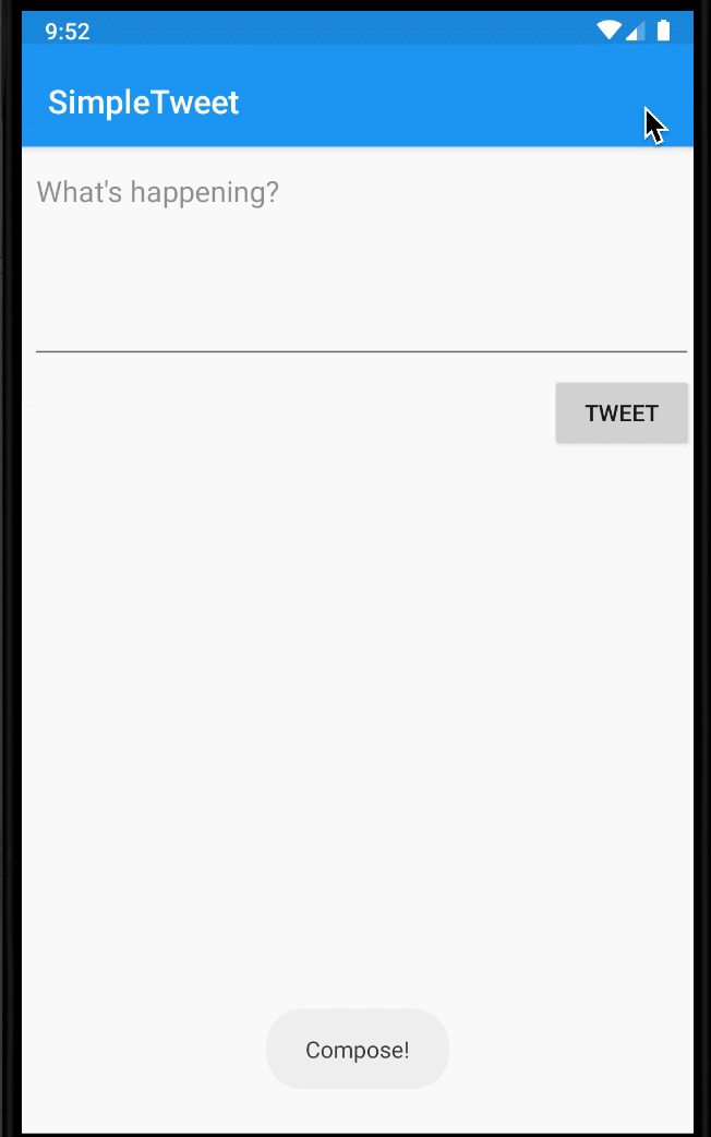 SimpleTweet is an android app that allows a user to view his Twitter timeline and post a new tweet. The app utilizes Twitter REST API.