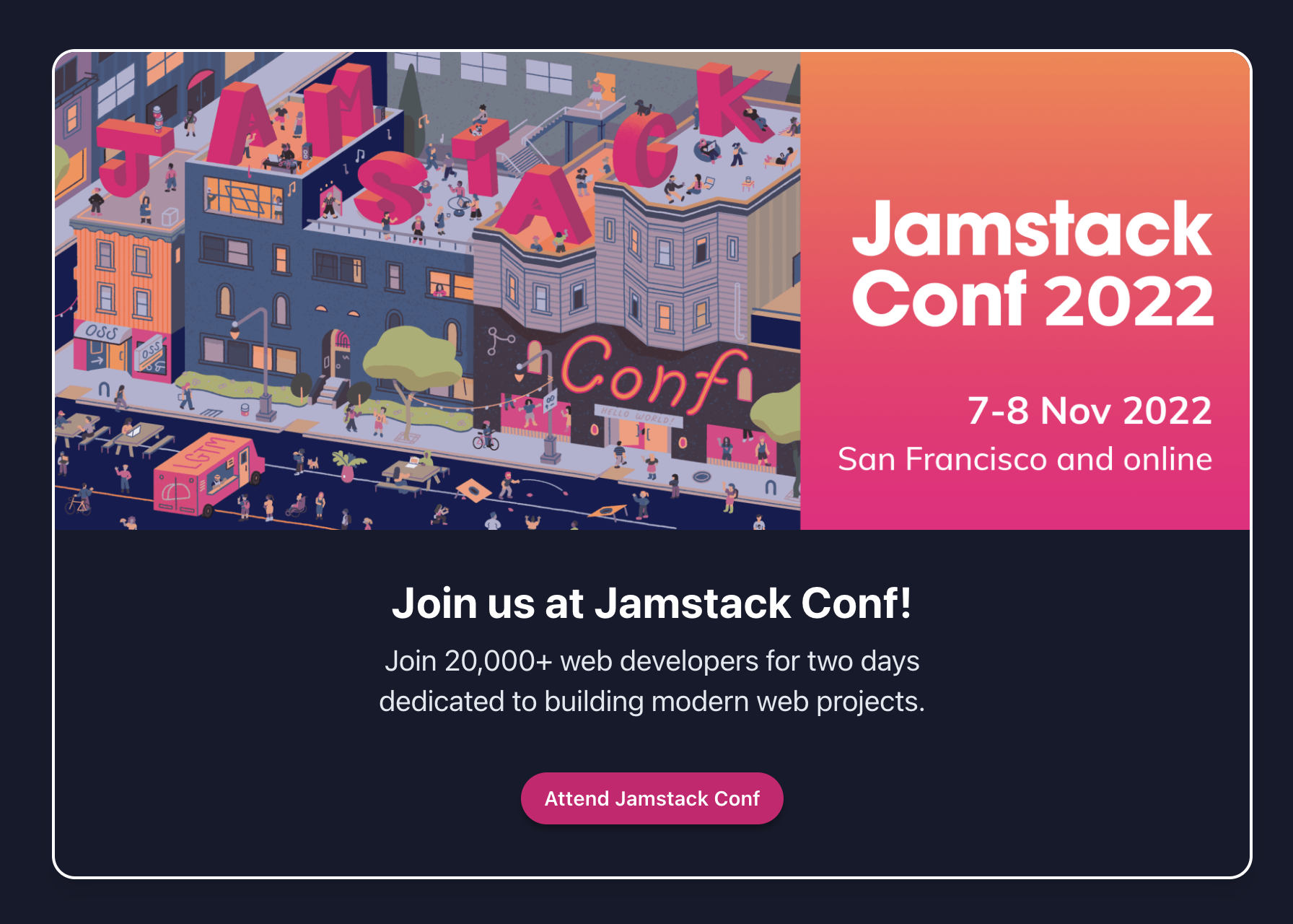A bit of different styling for the Jamstack Conf callout to match the site.