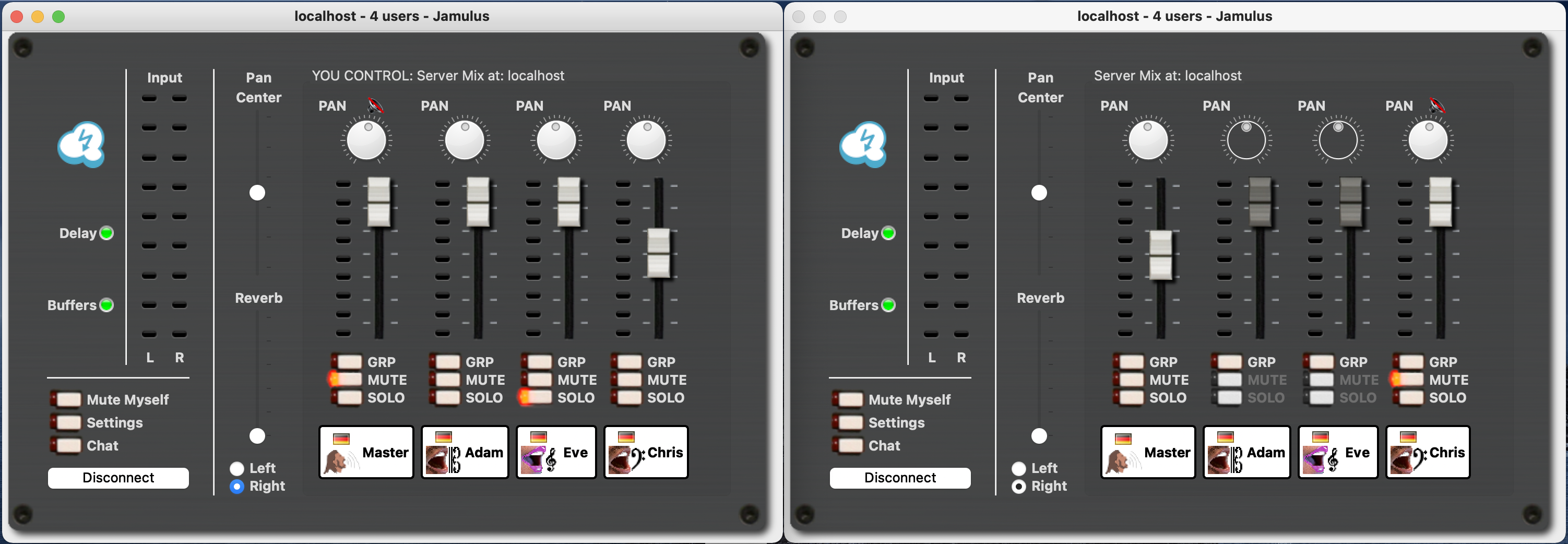 I would suggest that if the master presses Solo on somebody, that this is only applied to the mix of the master client. So we would send the same mix as before to all clients EXCEPT to the master client. |