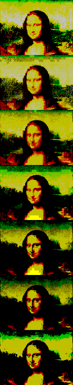 Note that the color reproduction results in real hardware will differ from the simulated, depending on the capabilities of the display device, and may be a flickering nightmare.
