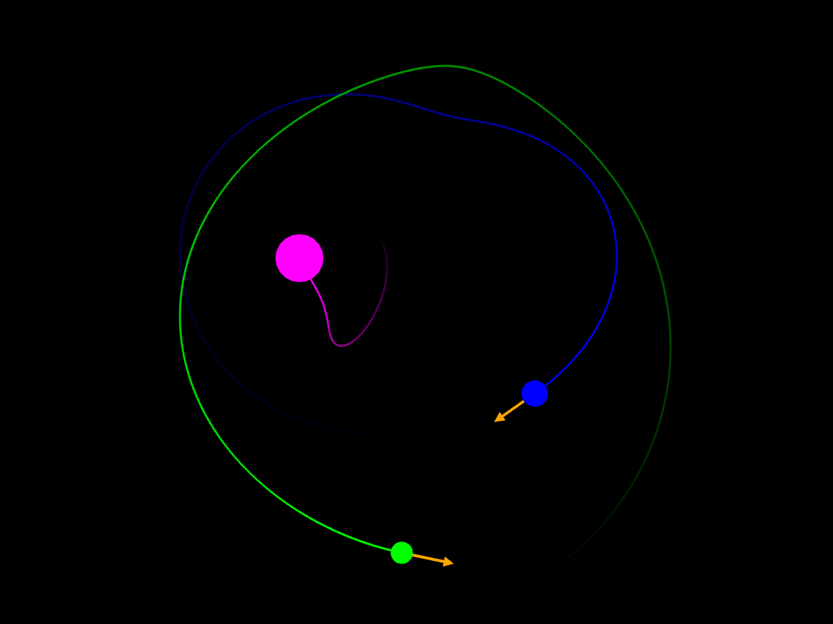 - Orbits are elliptical or hyperbolic depending on whether total energy is negative or postive, respectively