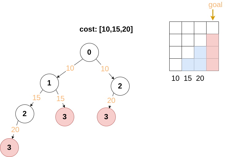 - 設定最開始最頂點的 cost =0 , 然後逐步往回推算
