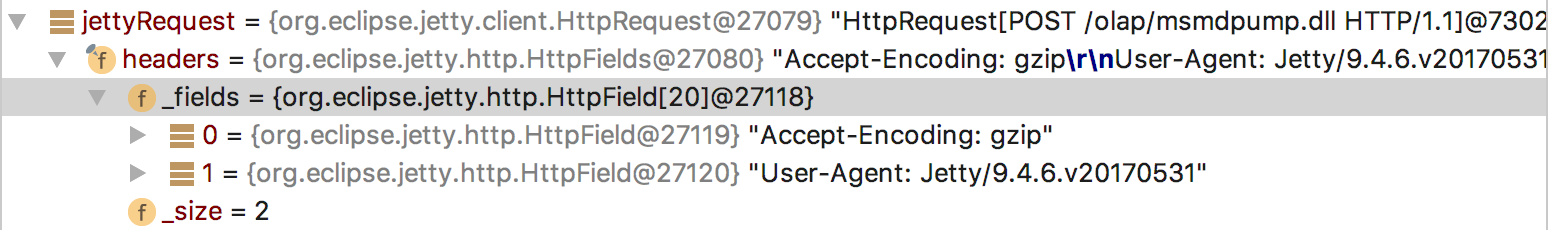in JettyConnector.java line 245, the jetty request is created with 2 headers by default :