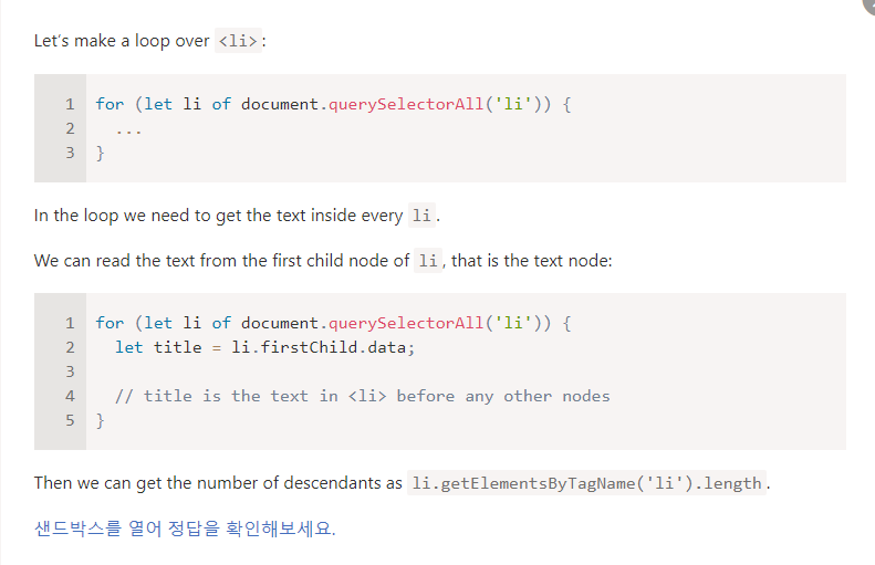 Part2 1.5 주요 노드 프로퍼티 첫 번째 과제(후손 노드 개수 세기) 해답 부분 번역을 진행하였습니다.