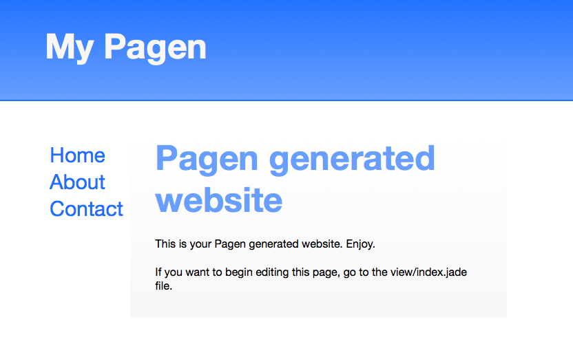 pagen.js is a simple and customizable site generator for node.js. You can generate nice-looking websites, from static to a MongoDB-run blog, in an instant.