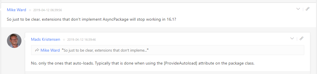 - Extensions: Log an issue for extensions that are not available yet in 2019, and that you wish to see. Goal is to keep track here when they are available and whether the author was asked to update it.