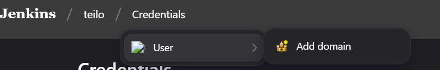 login to https://ci.jenkins.io/ navigate to https://ci.jenkins.io/me/credentials/ Hover over "credentials" in the header to show the initial domain store ("User") popup (note other domain stores are available in folders etc). hover in "User" until "Add Domain" pops up. (the icon is missing but this happens in 2.504 also) Move the mouse into "Add Domain" Wait 10 seconds