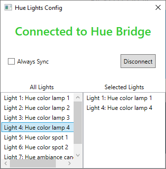 Experimental support for Philips Hue Lights - Connect to your Hue Bridge, select lights to be synchronized and control your scene with this app!