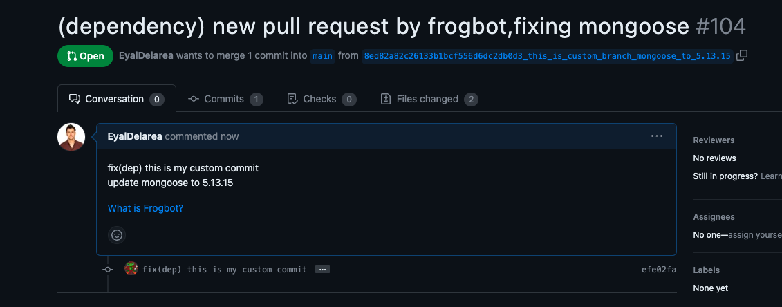 | # [Optional] Custom formats for commits, branches, and PR created by Frogbot. | ||