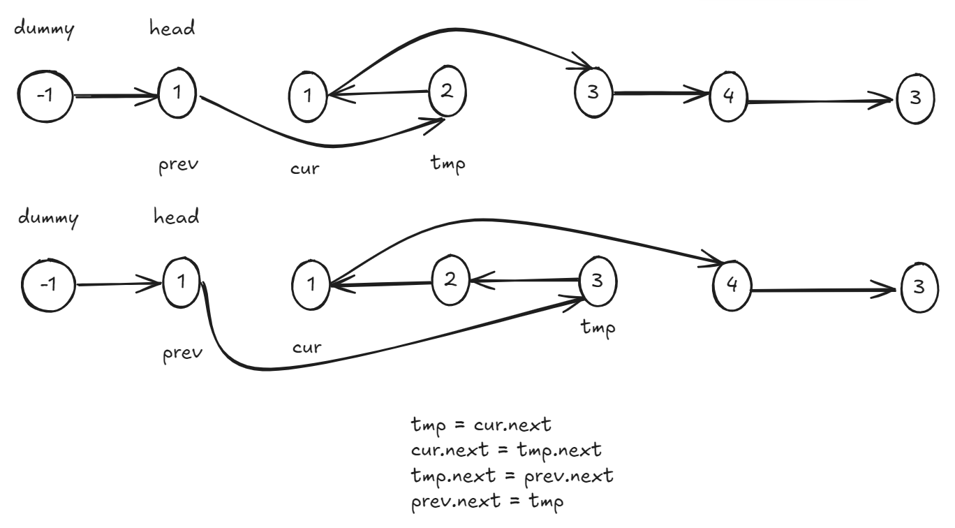ListNode pre = head, cur = head;