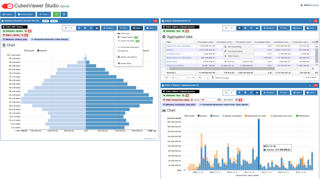 CubesViewer is a visual, web-based tool for exploring and analyzing OLAP databases served by the Cubes OLAP Framework.