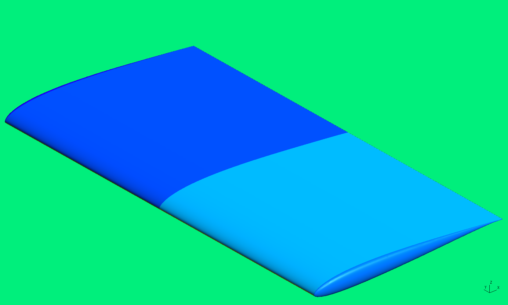 In this tutorial, we will cover generating a high order mesh for a wing with aspect ratio = 2 and a SD7003 airfoil section. While MeshOpt can generate the boundary layer for this case, it is better to use GMSH's boundary layer since MeshOpt is inefficient in creating 3D boundary layers. In this example, we will tell GMSH to generate a boundary layer containing only one layer of prismatic elements. This is not always guaranteed to work, but is a good workaround for some cases.