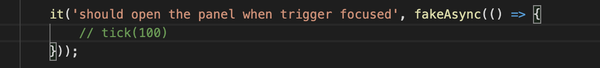 fakeAsync和tick来解决。tick 函数是 Angular 测试工具之一,是 fakeAsync 的同伴。 它只能在 fakeAsync 的主体中被调用。