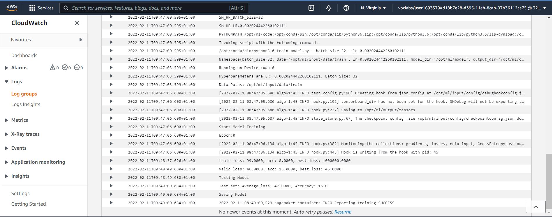 Log metrics of the training process