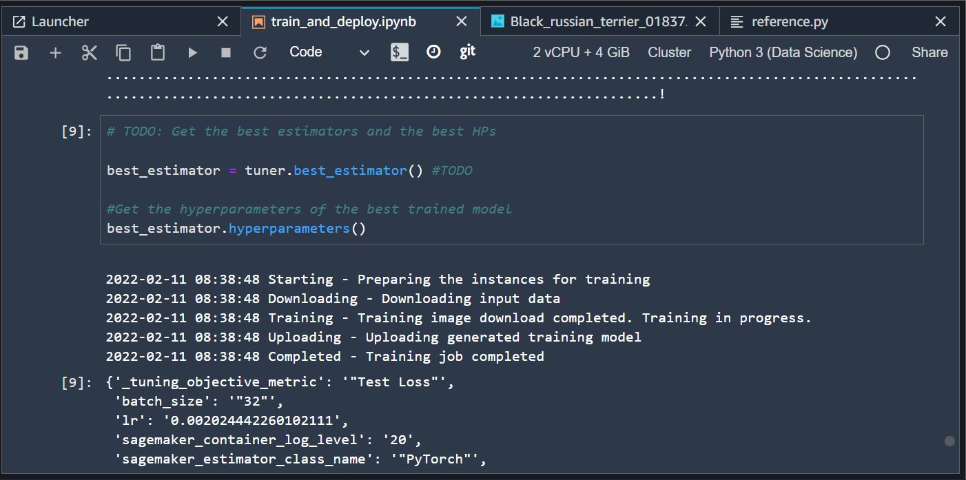 After successfully carrying out the training job with the best hyperparameter available, I called for deployment with pytorch_model.deploy(). I also run a prediction on the endpoint.