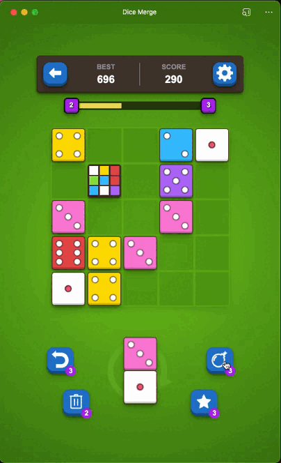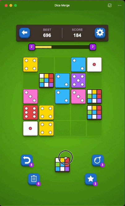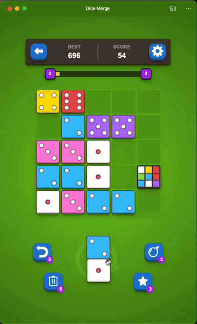 Dice Merge, es un juego de combinación que pondrá a prueba tu estrategia y habilidades de resolución de problemas. En este adictivo juego, tu objetivo es colocar dados en una cuadrícula de 5x5 y combinarlos para alcanzar el valor más alto posible.