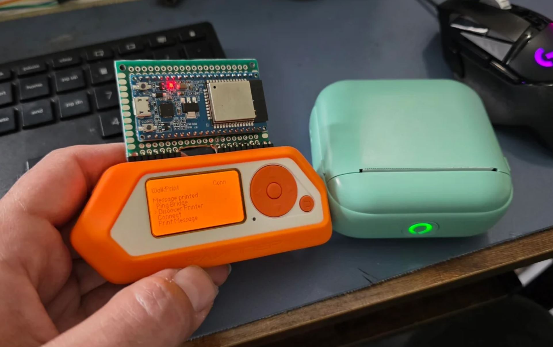 WalkPrint is a Flipper Zero external app for a WalkPrint / YHK-style thermal printer that can print typed messages, .txt files from the SD card, and 384px wide BMP images. It uses a single live path through an external ESP32 bridge instead of pretending the Flipper can talk to a Classic Bluetooth printer on its own.