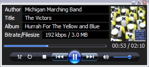 - Displayed at all times for at-a-glance viewing: Author, Track Title, Album, track bitrate, track filesize, track length, track current time index