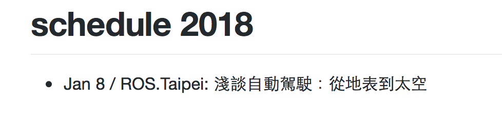 修正為Jan 7 / ROS.Taipei: 淺談自動駕駛:從地表到太空 <img width="489" alt="jsev-talk" src="https://user-images.githubusercontent.com/7314531/34346742-eb890194-ea35-11e7-9a9c-1fafc511759f.png">