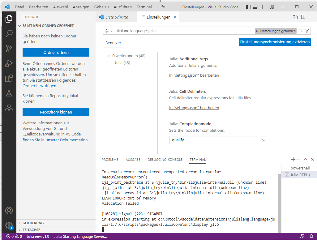 + Error: Some Julia code in the VS Code extension crashed