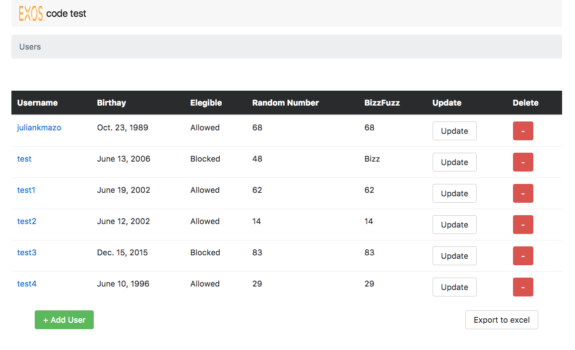 - Create views for listing all users, viewing, adding, editing and deleting a single user