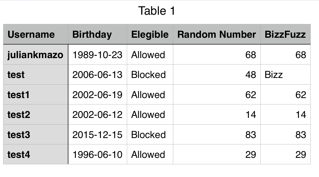 - Add a column to the list view after the random number column that uses the BizzFuzz tag