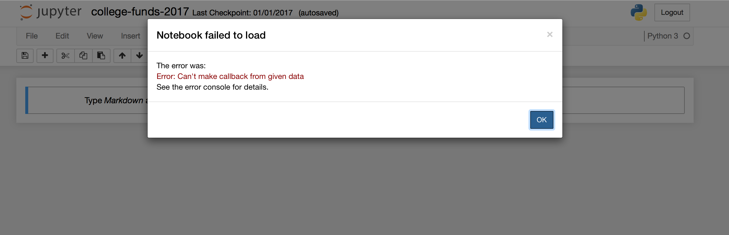 Running the notebook RC in a conda env and received a strange pop-up when opening an existing notebook. I don't know if something else needs updating (extensions?) but had never seen this before.