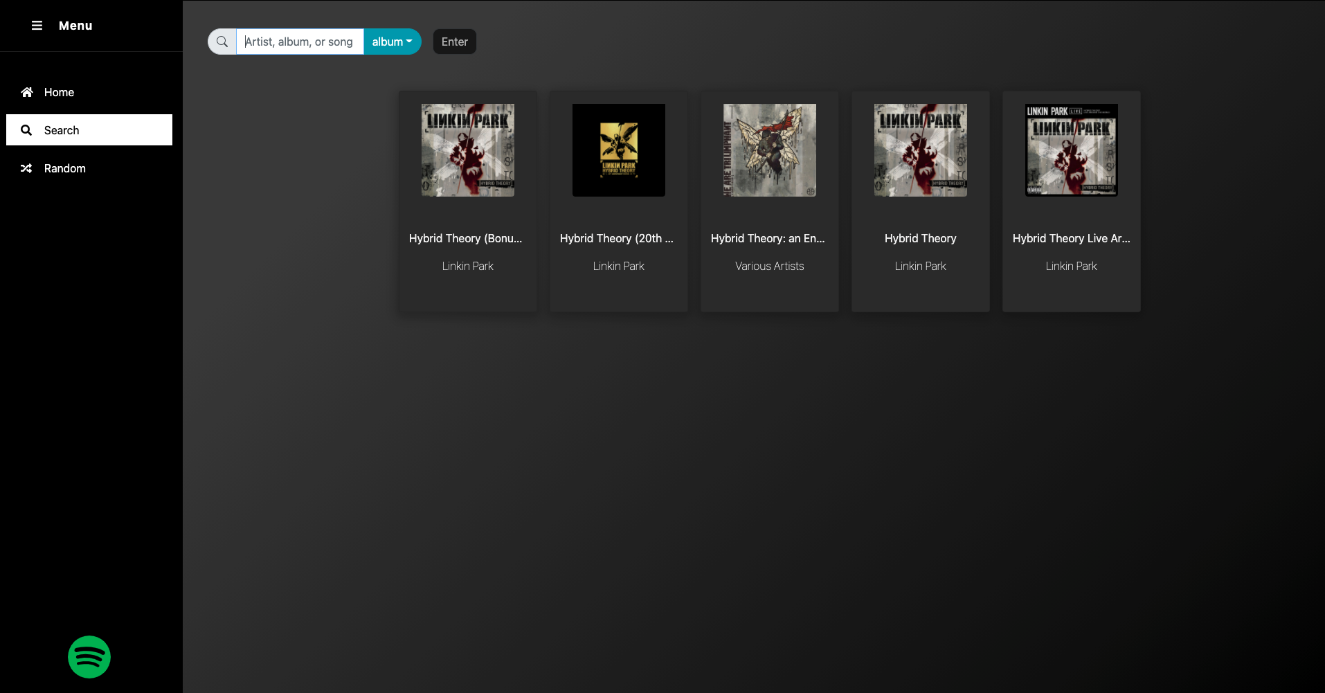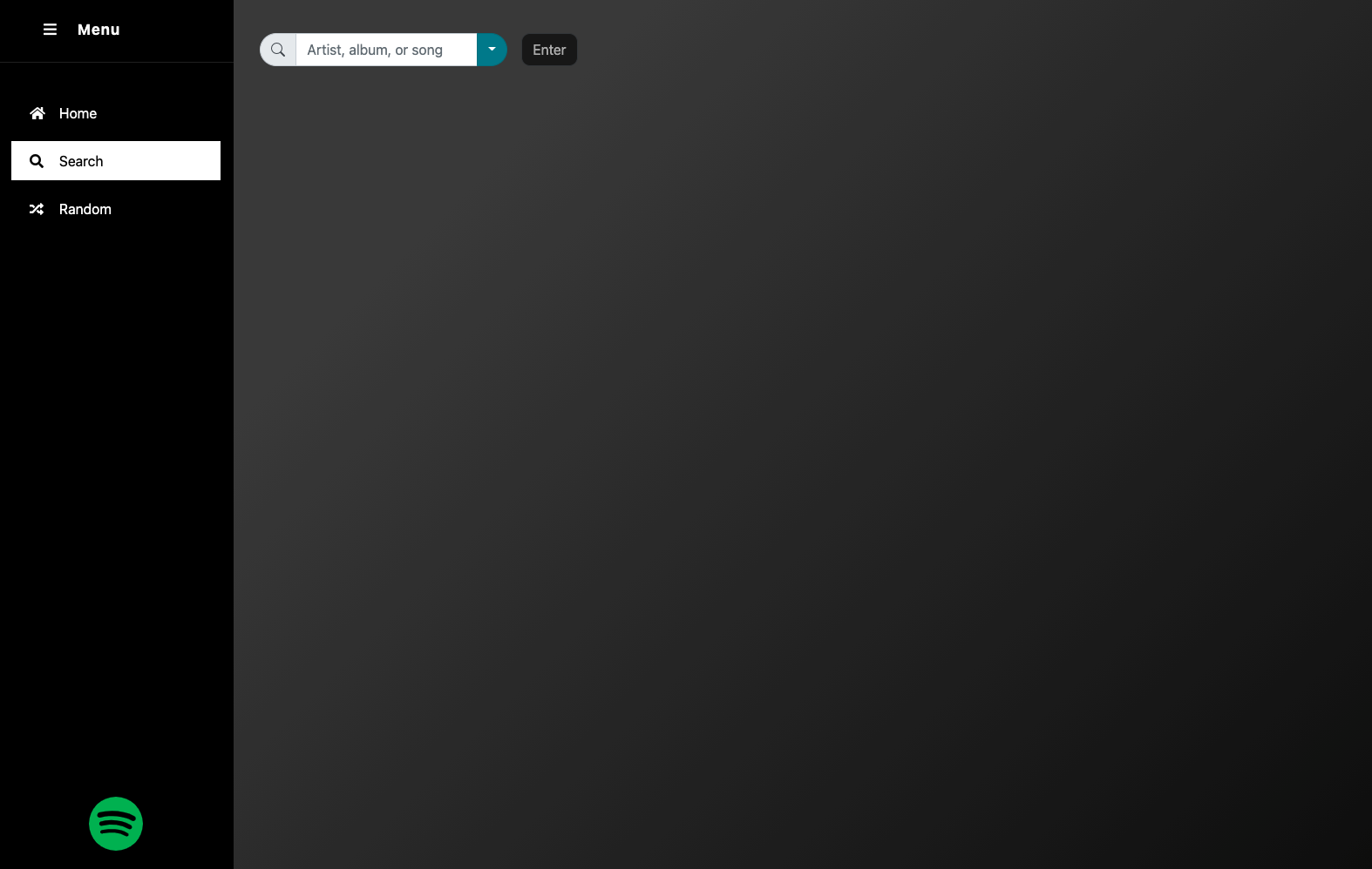 Search Spotify by artist, album, or song: