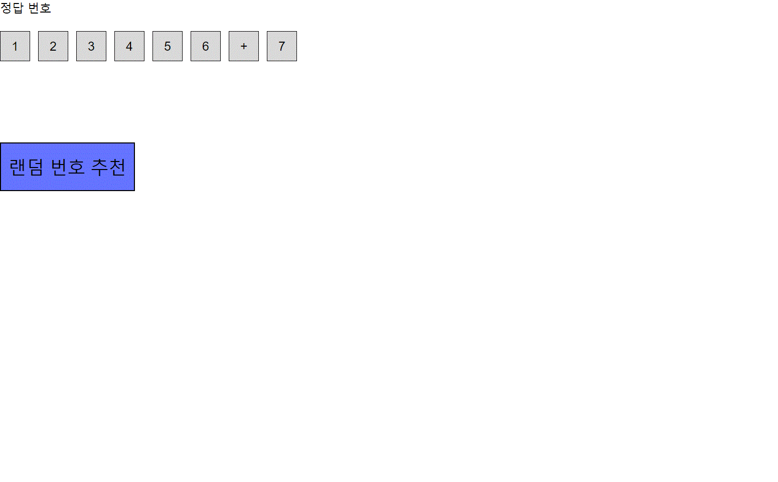 목표 기능 사용자가 '랜덤 번호 추천'을 클릭하면 정답 번호와 대조하여 등수를 출력한다. 버튼을 클릭하면 하단에 결과와 함께 랜덤으로 선택된 번호가 같이 나타난다. 사용 기술 figma(ui 설계) react react-dom typescript styled-components 헤로쿠 배포 링크 https://lotteryrandom-jyc.herokuapp.com/ 구현 모습