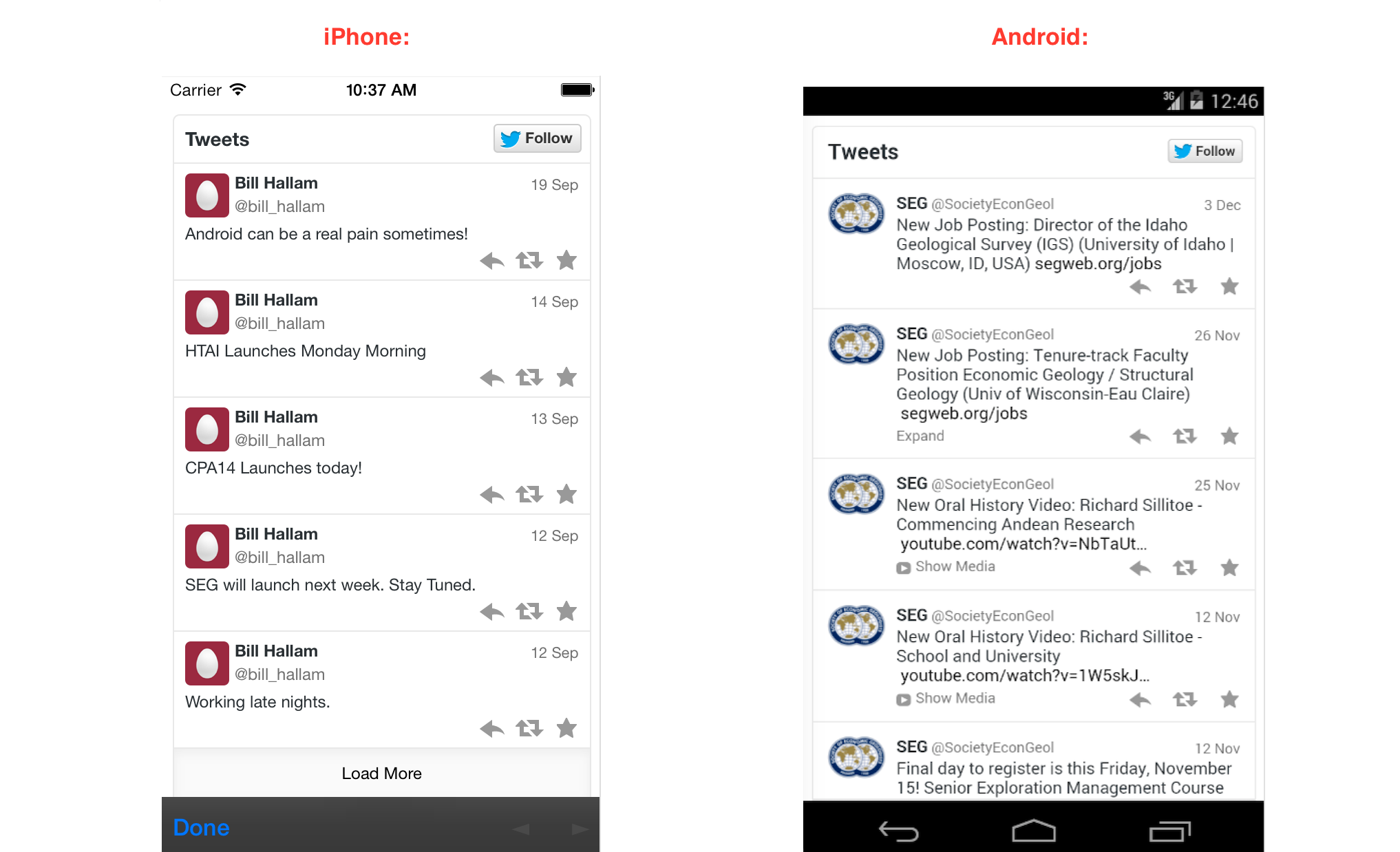 This is a dead simple service that allows to easily integrate an embedded twitter timeline to the PhoneGap native application.