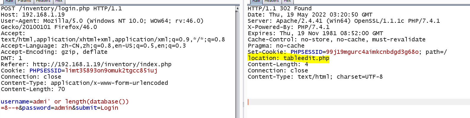 When length (database (()) = 8, Content-Length: 4;location: tableedit.php